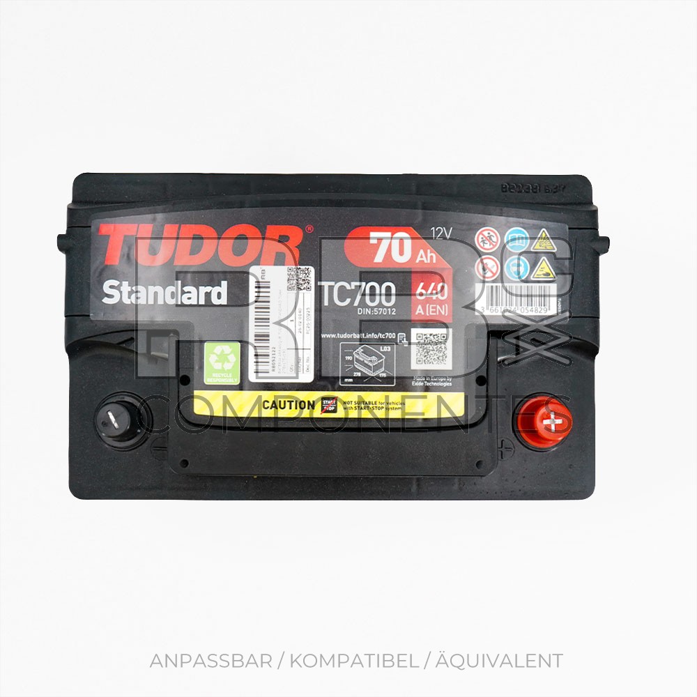 BATERIA ARRANQUE TUDOR STANDARD 70AH 278x175x190